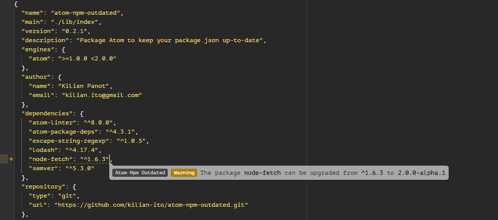Template project for atom packages in typescript. Attempting to install a package with any dependency from repository instead of npm registry (e.g. You need to have an array of package deps in your package manifest, like. You need to have an array of package deps in your package manifest, like